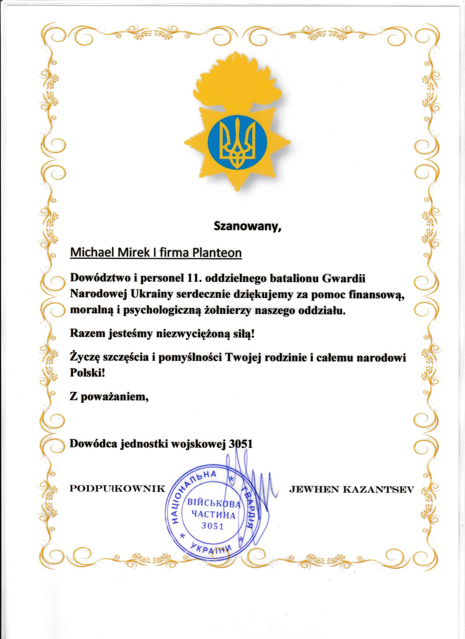 Siły Zbrojne Ukrainy składają podziękowania a ja się do nich dokładam.