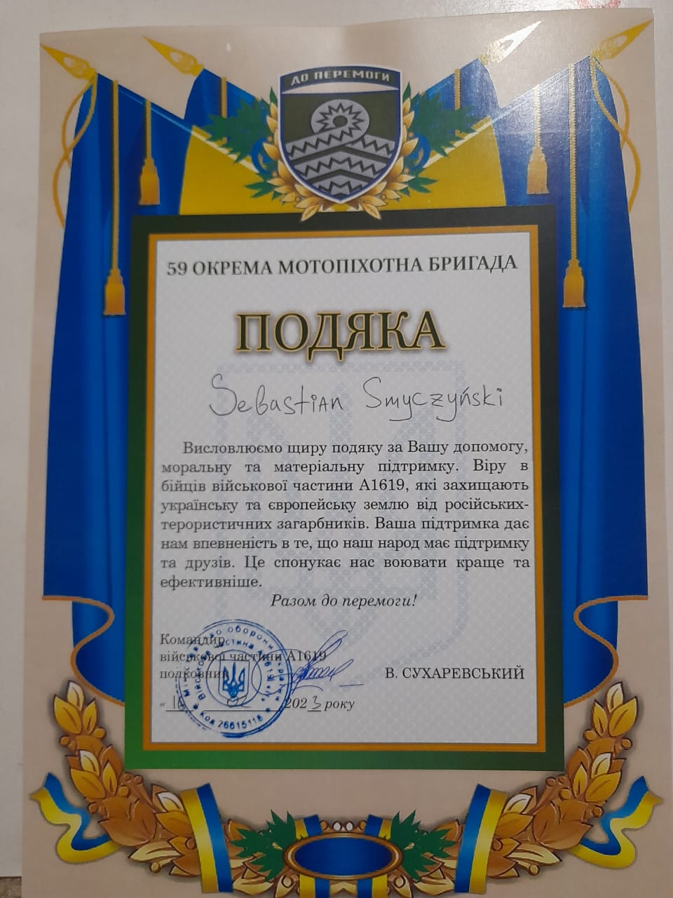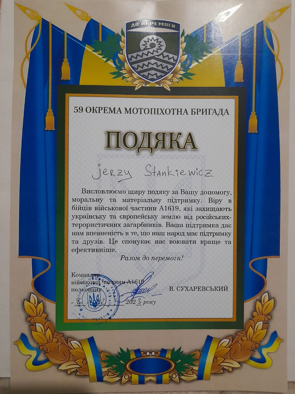 Siły Zbrojne Ukrainy składają podziękowania a ja się do nich dokładam.