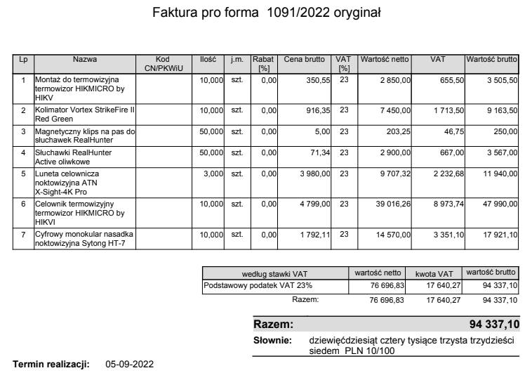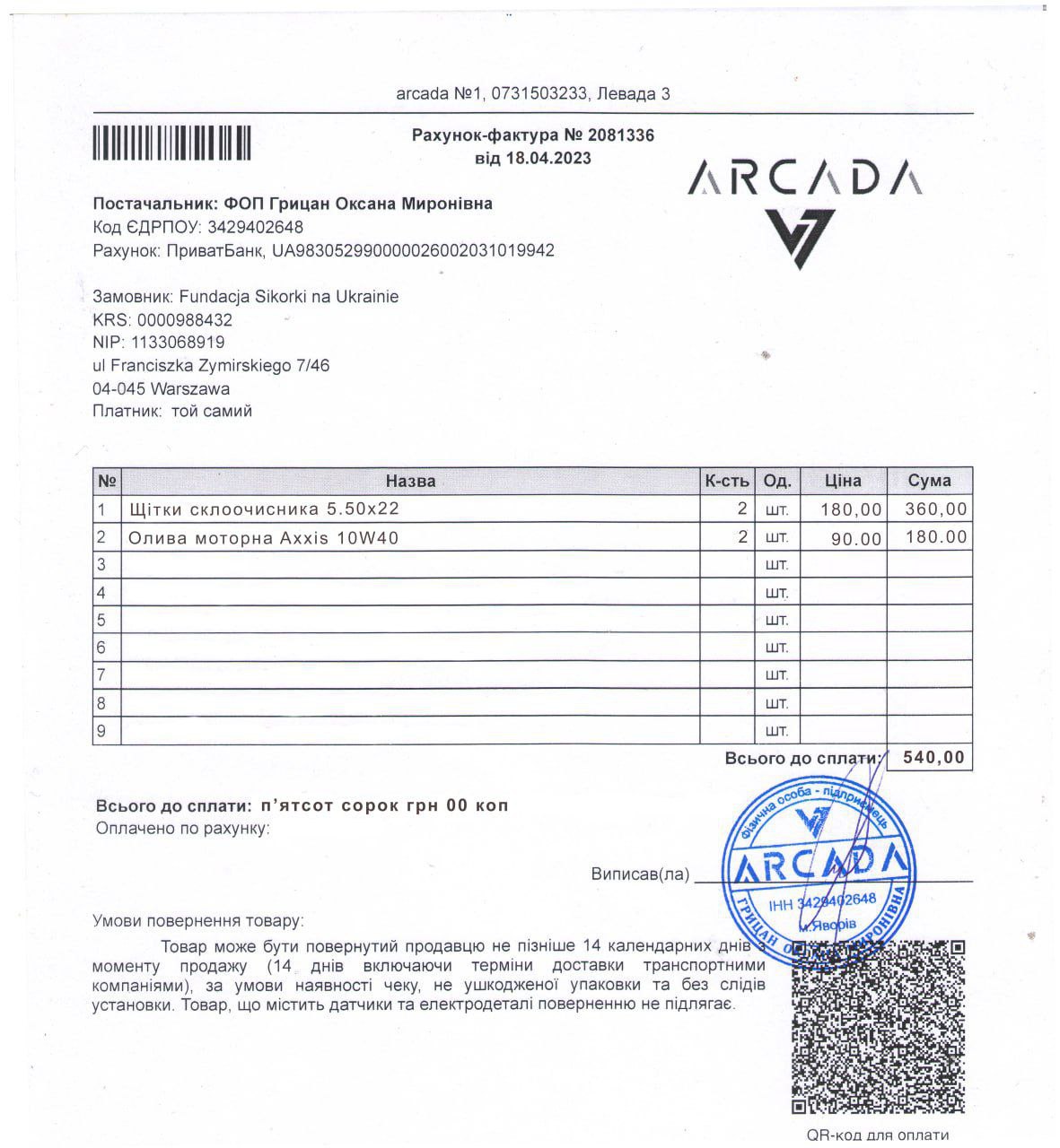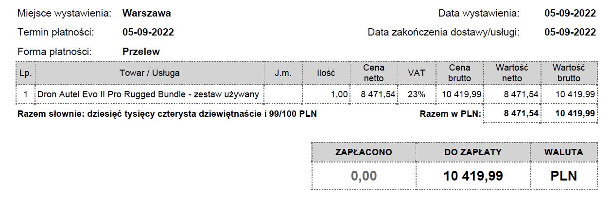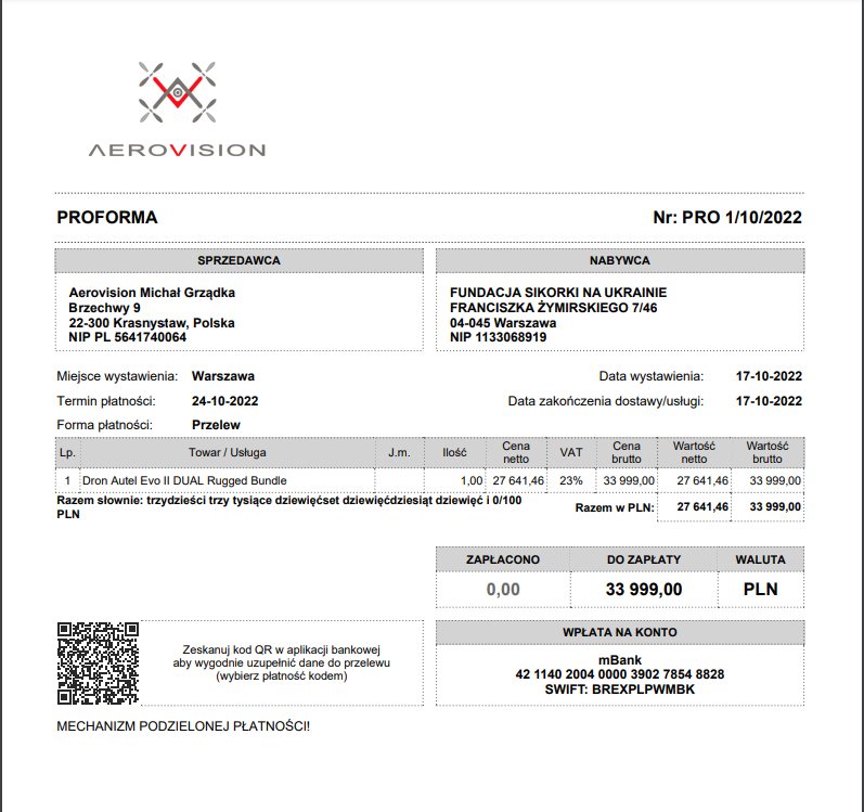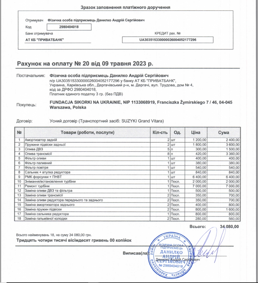 Dziś zapłaciliśmy za remont Grand Vitarki dostarczonej przez jedną organizację - faktura na zdjęciu.